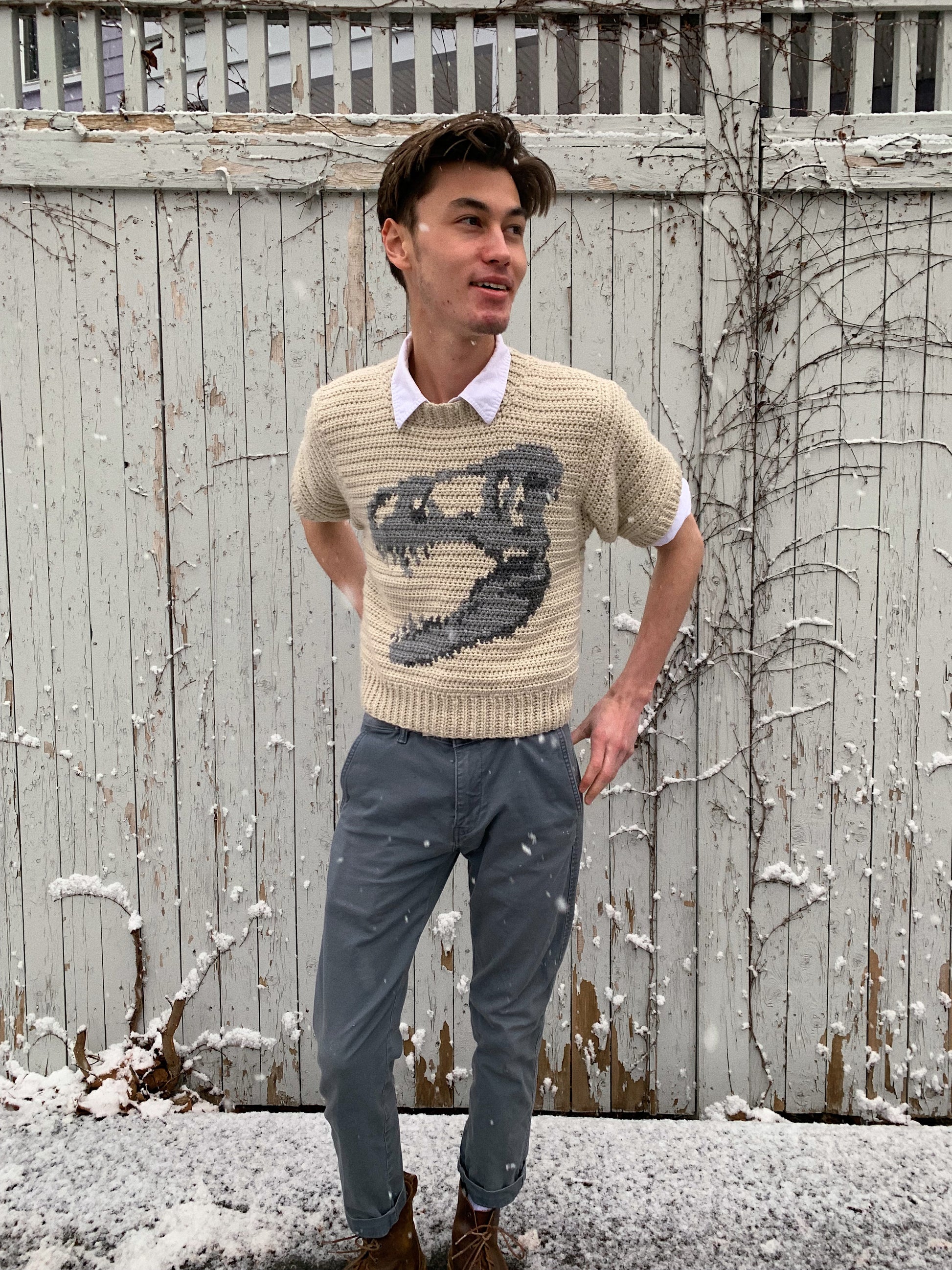 pattern: t rex shirt