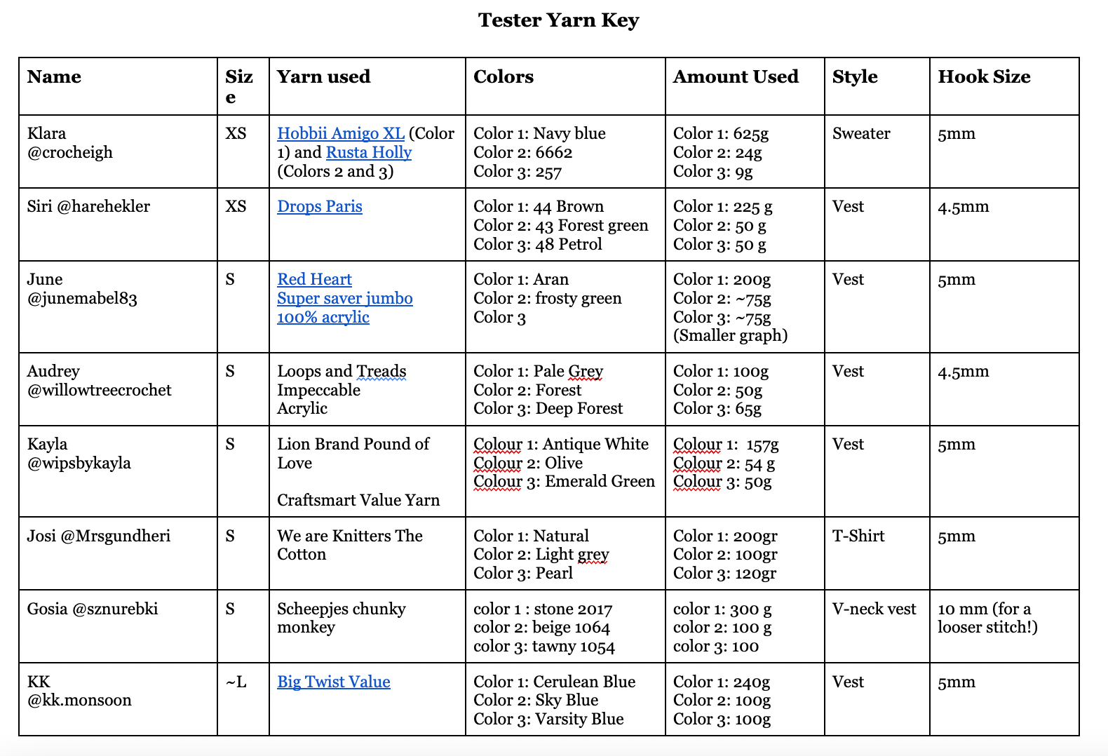 Recommended hook size for your yarn (I used 4.5mm)